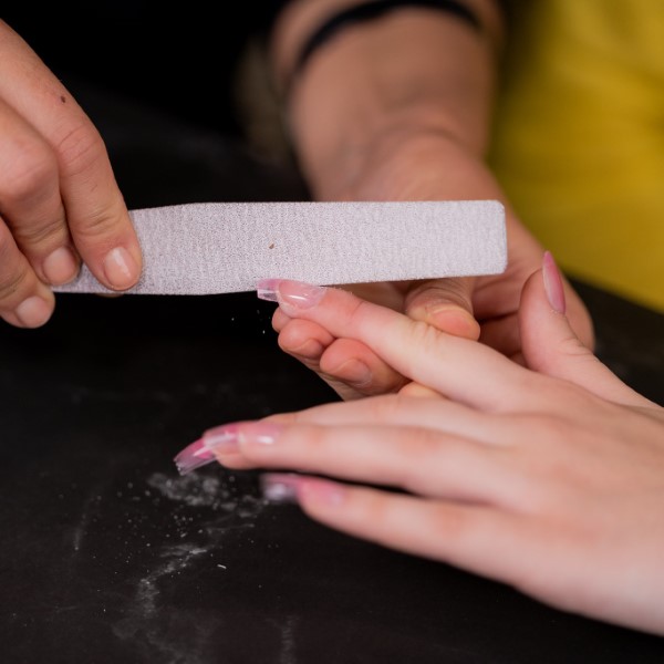 - Po sušení umělý nehet odlep a ubrus ho do požadovaného tvaru.